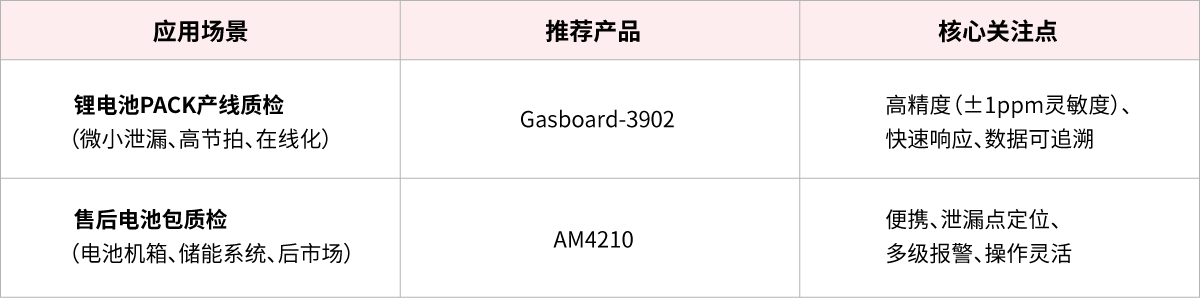 目前,處于征求意見階段的國家標(biāo)準(zhǔn)《鋰離子電池生產(chǎn)質(zhì)量管理》明確提出,在鋰電池及相關(guān)產(chǎn)品生產(chǎn)環(huán)節(jié),應(yīng)使用專業(yè)設(shè)備進(jìn)行電解液泄漏檢測。面對電池化學(xué)成分多樣化、生產(chǎn)節(jié)拍高速化的現(xiàn)實(shí)挑戰(zhàn),構(gòu)建快速、高效的泄漏檢測體系,已成為行業(yè)質(zhì)量管控的核心環(huán)節(jié)。1、鋰電池PACK產(chǎn)線質(zhì)檢:泄漏量極為微小,對檢測精度、靈敏度及低檢出限要求極高;檢測系統(tǒng)須具備快速響應(yīng)能力,以匹配高速流水線節(jié)拍,同時支持在線化、數(shù)據(jù)可追溯,便于集成于自動化生產(chǎn)管理系統(tǒng)。