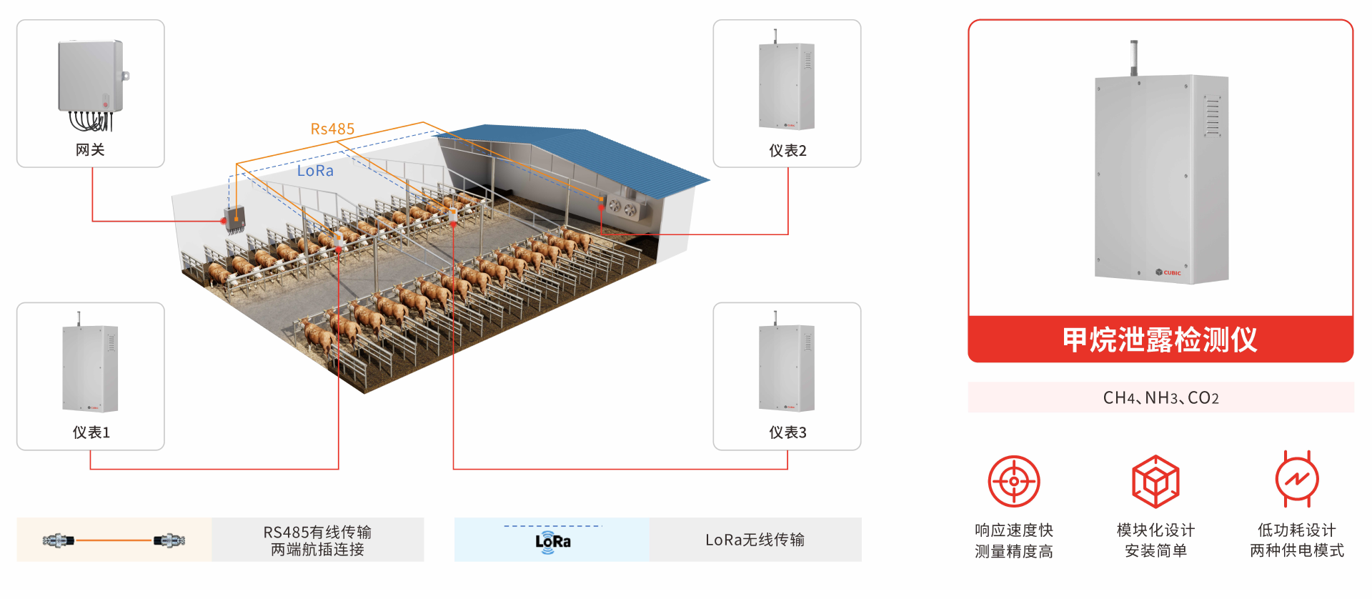 基于分布式的傳感器監(jiān)測手段和現(xiàn)代物聯(lián)網(wǎng)技術(shù),圍繞養(yǎng)殖場生產(chǎn)環(huán)節(jié),通過智能傳感器在線采集畜舍場內(nèi)CH4、CO2,NH3等濃度信息,養(yǎng)殖戶可通過信息終端實時監(jiān)控場內(nèi)NH3濃度變化,提高畜禽生長環(huán)境質(zhì)量,同時為各點位溫室氣體排放量核算提供數(shù)據(jù)支撐。